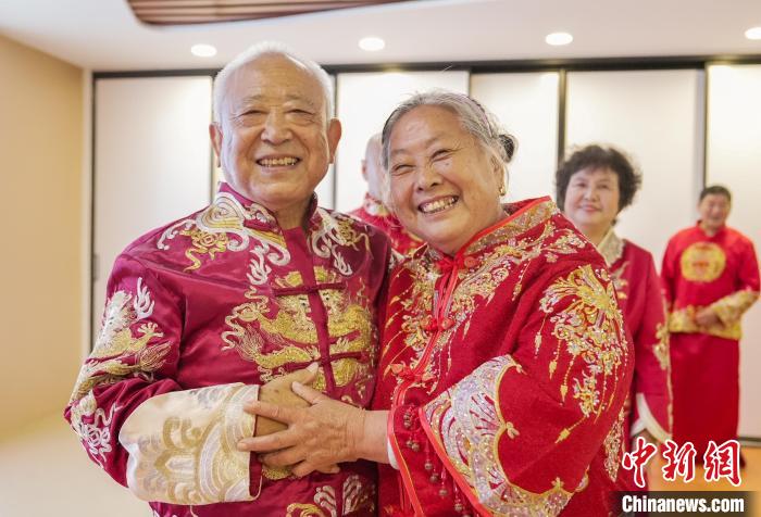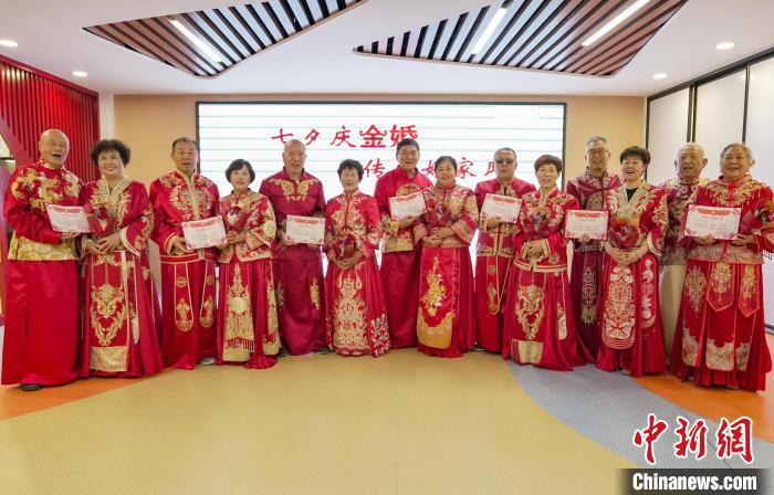 七夕將至,河北省邯鄲市老人走進(jìn)叢臺(tái)區(qū)光明橋街道天璽苑社區(qū),參加“七夕迎金婚 共創(chuàng)好家風(fēng)”慶典,回憶半個(gè)世紀(jì)的愛情。金婚慶典儀式經(jīng)過牽手入場、夫妻對拜、執(zhí)子之手、回憶往昔等環(huán)節(jié),見證了金婚夫妻們相濡以沫、互敬互愛的美滿婚姻。金婚老人結(jié)合親身經(jīng)歷,分享家風(fēng)家訓(xùn)及愛情故事,講述家庭幸福的秘訣,“曬”出婚姻保鮮的秘籍,分享婚姻的經(jīng)營智慧。圖為8月6日,金婚夫妻合影留念。王倩倩 攝
