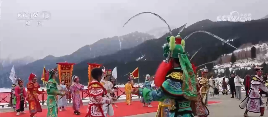 元宵節(jié)到來之際,新疆天山天池景區(qū)上演了一場南北文化相逢的精彩演出,廣東英歌舞邂逅西北的高山湖泊,為游客營造出獨特的節(jié)日氛圍。