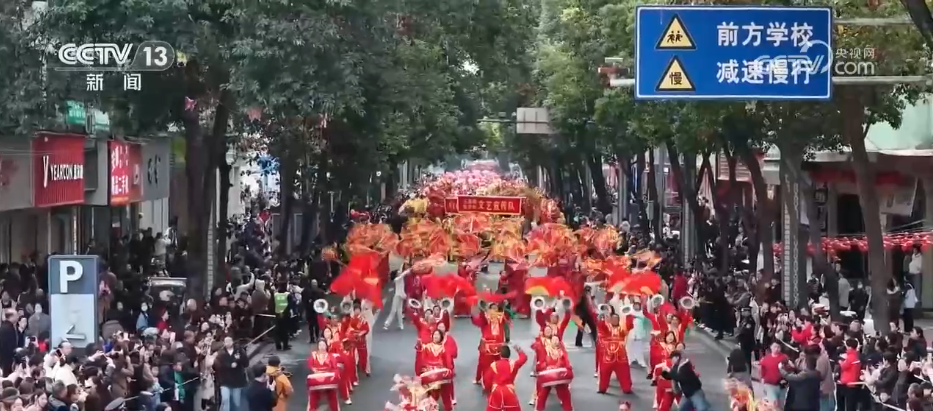 在陜西安康市中心城區(qū),千余名表演者身著彩服,手持彩扇,踩著鼓點一路巡游。舞龍舞獅、花鼓子等傳統(tǒng)節(jié)目與大道鑼鼓、打連錢等地方特色民俗表演輪番亮相,吸引了眾多游客和市民駐足觀賞。
