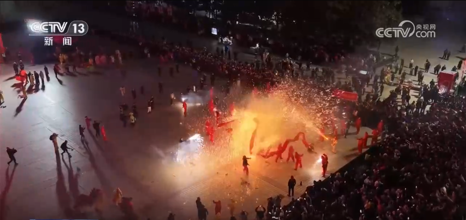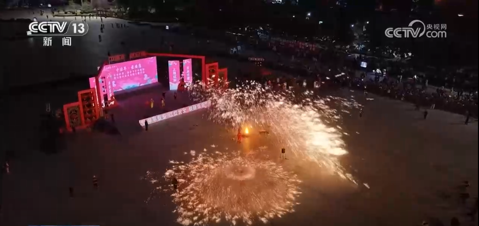 夜幕降臨,極具陜南特色的燒火龍表演震撼登場。舞龍者迎著飛濺的焰火輾轉(zhuǎn)騰挪、穿梭起舞。此外,打鐵花、火壺等表演也輪番亮相,讓市民和游客在絢爛光影中感受傳統(tǒng)民俗的別樣魅力。