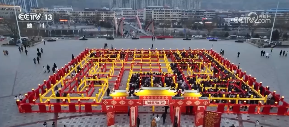 山西太原市婁煩縣的轉(zhuǎn)九曲,以燈陣布局,因其形如九曲十八彎的黃河而得名,設(shè)有狀元門、吉祥門、得勝門、子孫門等九道門。群眾手持彩燈有序穿行,在蜿蜒燈路中祈福納祥。