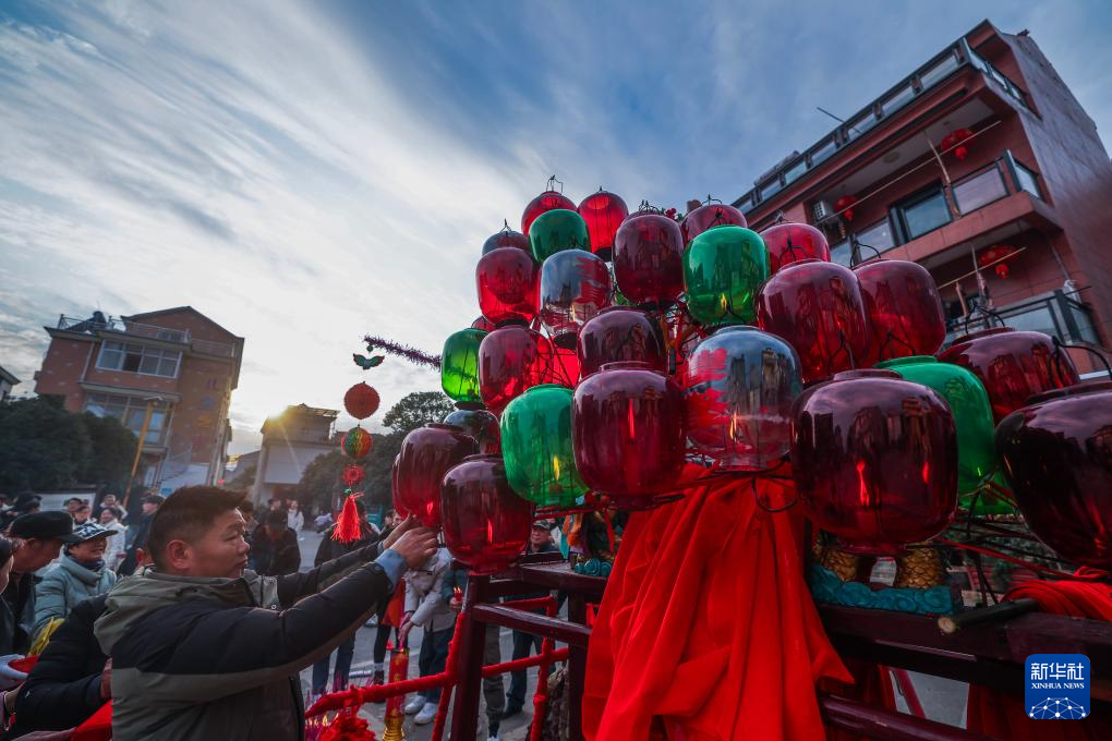 當(dāng)日是農(nóng)歷正月十三,浙江省金華市金東區(qū)赤松鎮(zhèn)虎巖村村民肩扛由100余節(jié)板凳組成的傳統(tǒng)五彩龍燈,沿村道蜿蜒游舞。板凳龍的龍頭被彩燈包裹,裝飾有花卉、祥云等圖案,在燭光搖曳間營(yíng)造出“龍騰盛世”的年俗畫卷。每年元宵節(jié)前后,浙江省金華市金東區(qū)赤松鎮(zhèn)的各村村民都會(huì)舞起板凳龍燈,祈求來年風(fēng)調(diào)雨順、五谷豐登。