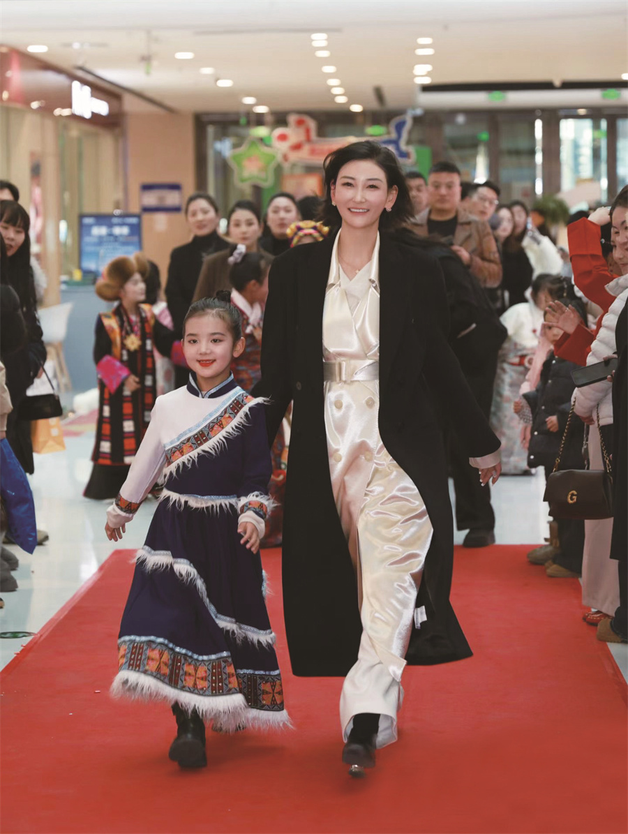 洛桑卓瑪與童模一起走秀。德吉卓瑪供圖