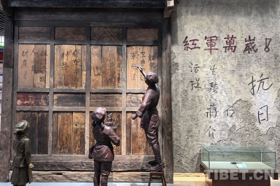 圖為迪慶紅軍長征博物館內(nèi),曾經(jīng)紅軍以標(biāo)語許諾當(dāng)?shù)匕傩涨锖敛环傅那榫斑€原 攝影:邊子捷