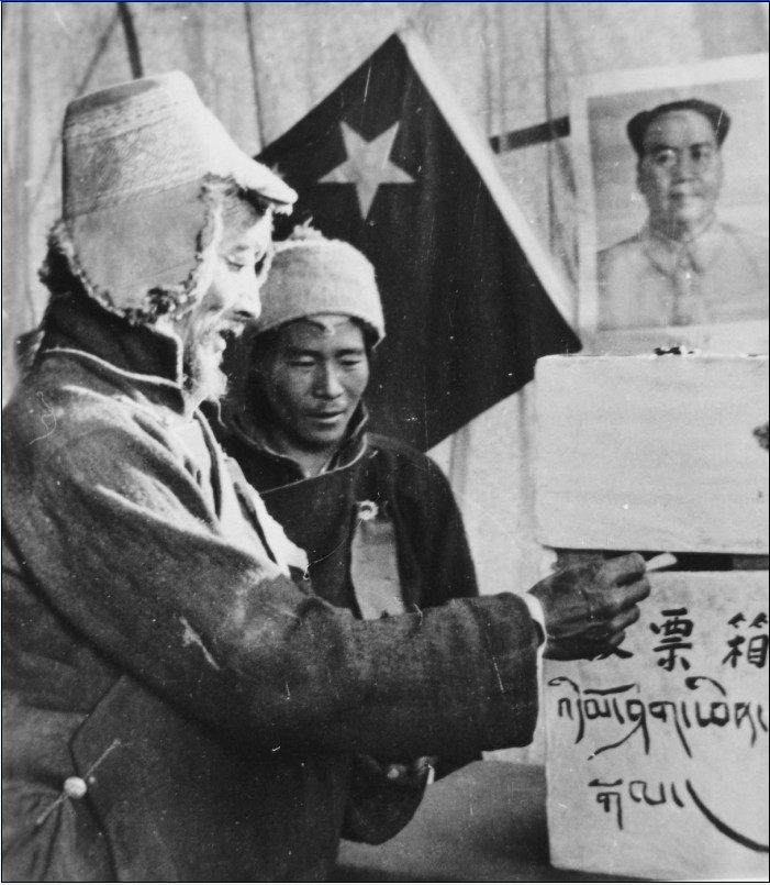 《曲水縣翻身農(nóng)奴扎西旺堆生平第一回享有了政治權(quán)利,參加普選,選舉人民代表》1963年 陳宗烈攝 照片來源:首屆印象西藏特邀老照片,版權(quán)歸原作者所有。