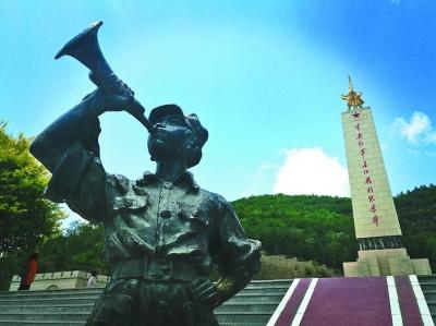 位于陜西延安吳起縣的中央紅軍長征勝利紀念園內(nèi)的雕塑和紀念碑。光明圖片