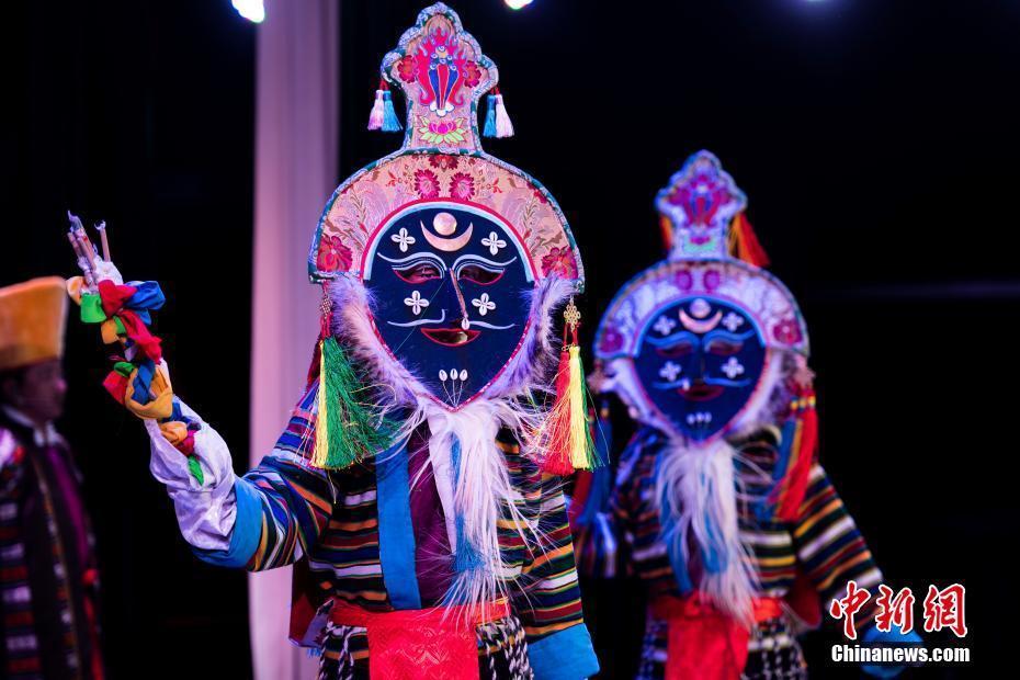 圖為藏戲藍面具表演。中新社記者 何蓬磊 攝