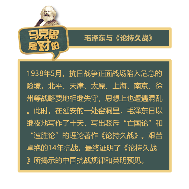 毛澤東同志說過一句話,他說:“馬克思主義有幾門學(xué)問,但基礎(chǔ)的東西是馬克思主義哲學(xué)。這個(gè)東西如果沒有學(xué)通,我們就沒有共同的語言,沒有共同的方法,扯了許多皮,扯還扯不清楚。有了辯證唯物論的思想,就省了許多事,也少犯許多錯(cuò)誤。”《論持久戰(zhàn)》就是一個(gè)十分典型的例子。這部著作分析了中日雙方相互矛盾著的四個(gè)基本特點(diǎn),它就是敵強(qiáng)我弱、敵小我大、敵退步我進(jìn)步、敵寡助我多助。根據(jù)這些特點(diǎn)的分析,就作出了中國不會(huì)滅亡,也不能速勝。只要經(jīng)過艱苦、持久的抗戰(zhàn),最后的勝利一定屬于中國的這樣一個(gè)正確的結(jié)論,這就為中國人民的抗日戰(zhàn)爭(zhēng)指明了勝利的方向。