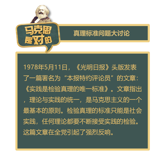 今天我們重溫“真理標(biāo)準(zhǔn)問題大討論”,確實(shí)讓人感慨萬千。“實(shí)踐是檢驗(yàn)真理的唯一標(biāo)準(zhǔn)”這個(gè)觀點(diǎn)是馬克思主義哲學(xué)的一個(gè)基本觀點(diǎn)。1845年春,馬克思在《關(guān)于費(fèi)爾巴哈的提綱》第二條中就曾擲地有聲地說:“人的思維是否具有客觀的真理性,這并不是一個(gè)理論問題,而是一個(gè)實(shí)踐的問題?!?/strong>
