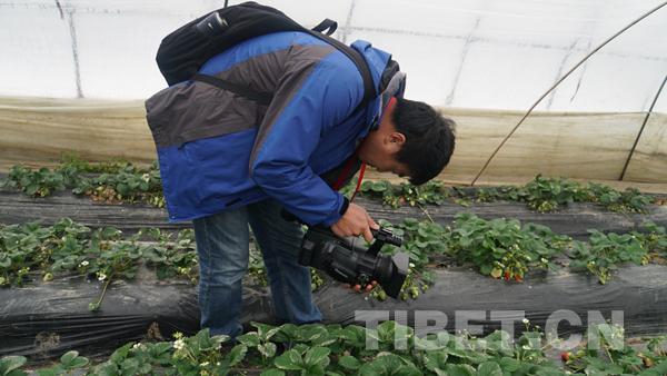 圖為記者走進(jìn)東陵村現(xiàn)代新型產(chǎn)業(yè)園的草莓大棚 攝影:次仁頓珠
