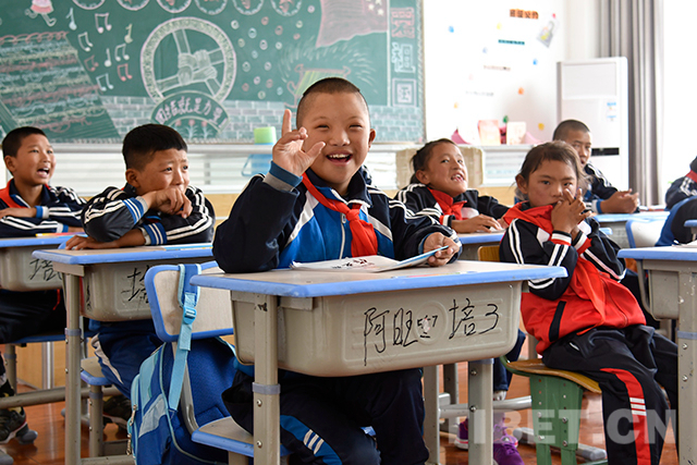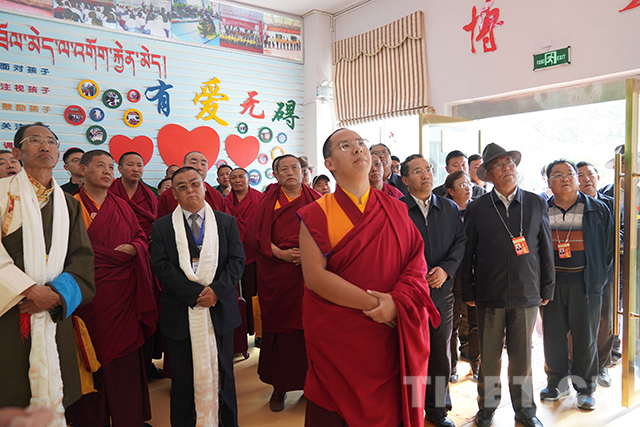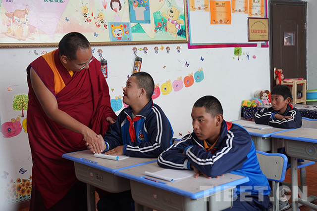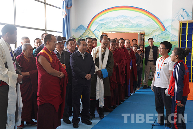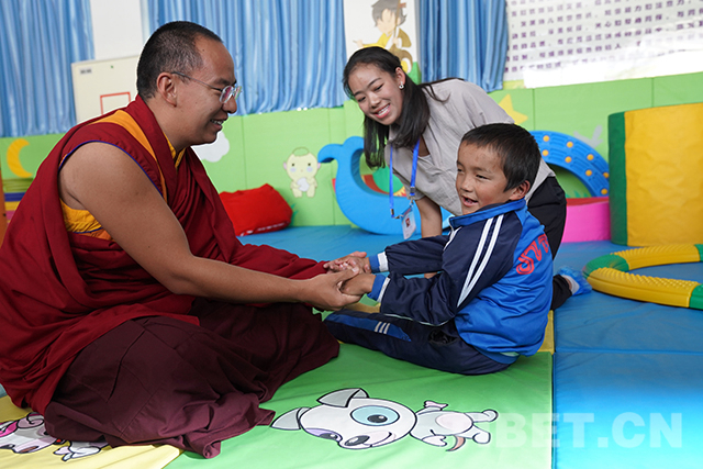 “喜歡這份工作嗎?”“愿意做這份工作嗎?”在康復(fù)區(qū)參觀調(diào)研時(shí),十一世班禪仔細(xì)詢問(wèn)老師們的工作情況并對(duì)他們說(shuō):“你們?cè)谶@里為這些殘障的孩子奉獻(xiàn),很了不起,向你們致敬。”