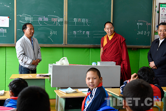 圖為十一世班禪參觀調(diào)研學(xué)校。攝影:王淑
