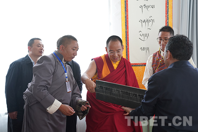 十一世班禪來(lái)到藏文書法室。攝影:王淑