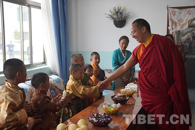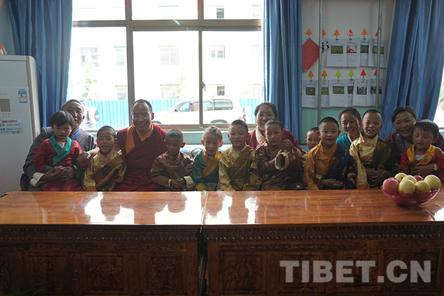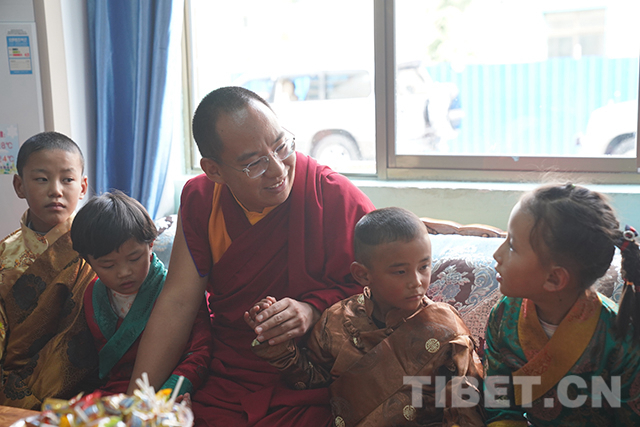 看望完殘障學(xué)生后,十一世班禪又來(lái)到山南市兒童福利院,看望在這里生活的山南市和那曲市部分孤兒。本著“一心想著孩子,一切為了孩子”的理念,福利院為460多名孩子提供了室內(nèi)外活動(dòng)室、電教室、圖書室、美術(shù)室、成長(zhǎng)教育園地、舞蹈室、藏文書法室等,孩子們可以在這里學(xué)習(xí)文化、增長(zhǎng)見(jiàn)識(shí)。
