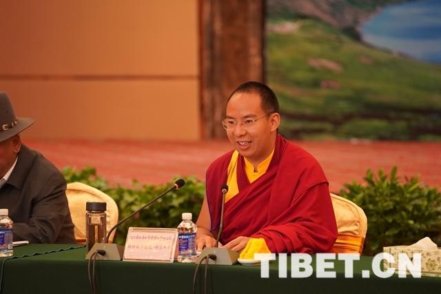 圖為:十一世班禪在座談會(huì)上講話。攝影:王淑