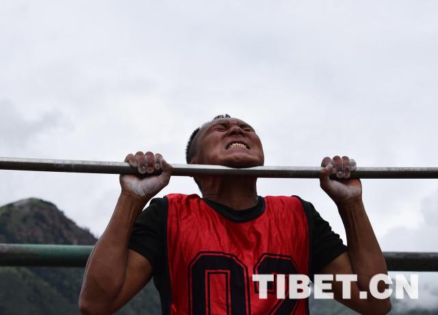 圖為努力到無能為力,拼搏到感到自己。賽場(chǎng)上的風(fēng)采,充分展示了雪域高原官兵的血性虎氣。