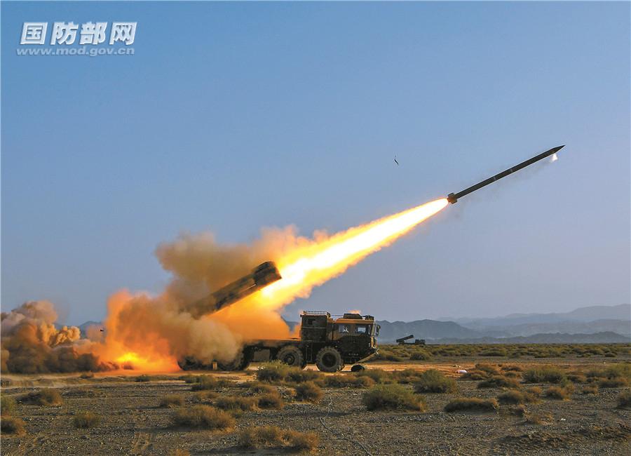 “5、4、3、2、1,發(fā)射!”7時(shí)整,伴隨指揮員的發(fā)射命令,數(shù)十枚火箭彈似一顆顆流星在戈壁上空劃過(guò),飛向“敵”陣……實(shí)時(shí)畫面顯示,所有炮彈準(zhǔn)確覆蓋目標(biāo),“敵”陣遭到重創(chuàng)。