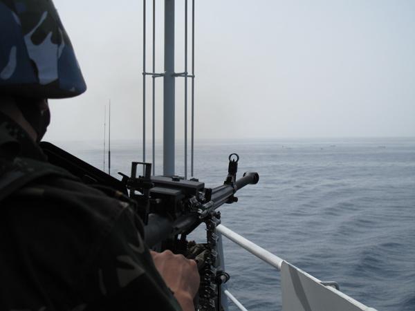 “噠噠噠……”,特戰(zhàn)隊(duì)員扣動(dòng)扳機(jī),重機(jī)槍發(fā)出猛烈的怒吼,呼嘯而出的子彈在海盜快艇前筑起一道難以逾越的火線,海盜見狀,頓時(shí)慌了手腳,急忙調(diào)轉(zhuǎn)船頭,倉(cāng)皇逃竄。