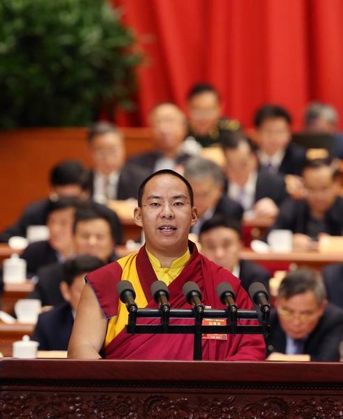3月11日,全國政協(xié)十二屆五次會議在北京人民大會堂舉行第四次全體會議,作為全國政協(xié)常委,十一世班禪在會上作題為《做好宗教工作為國家發(fā)展和人類福祉做出新時代的貢獻》的發(fā)言。圖片來源:新華網(wǎng)