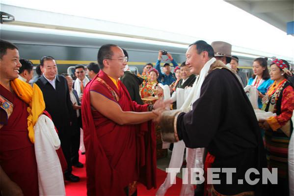 8月1日,十一世班禪圓滿結束在拉薩的各項佛事和社會活動后,乘火車回抵日喀則扎什倫布寺,受到日喀則市社會各界及信教群眾的隆重歡迎。攝影:王淑