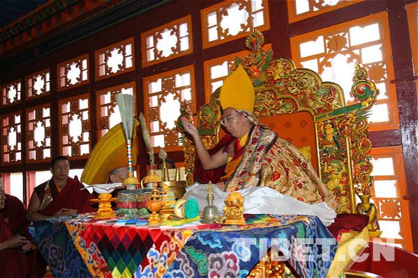 7月30日,十一世班禪在班禪拉薩行宮“雪林多吉頗彰”為廣大信教群眾摸頂賜福。攝影:王淑