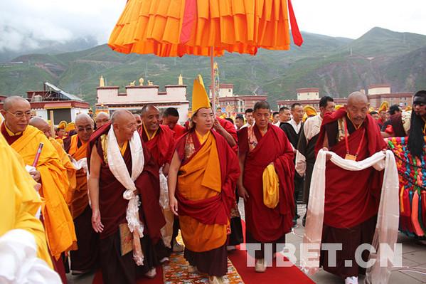 7月18日至24日,十一世班禪在青??疾煺{(diào)研,并舉行佛事活動。圖為他在結古寺法會上,法相莊嚴,威儀具足。攝影:袁星宇