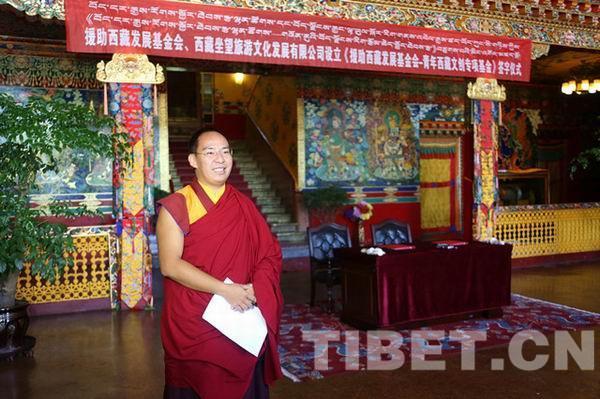 為推動西藏社會經(jīng)濟文化產(chǎn)業(yè)的發(fā)展,促進各族青年交往、交流、交融,推進民族團結,9月24日,援助西藏發(fā)展基金會與坐望旅游文化發(fā)展有限公司在西藏日喀則德慶格桑頗章簽署了“青年文創(chuàng)專項基金戰(zhàn)略合作協(xié)議”。圖為十一世班禪在簽字儀式上講話。攝影:王淑
