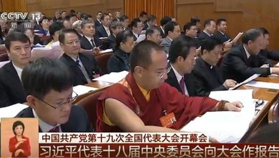 圖為班禪列席黨的十九大開幕會 央視截圖