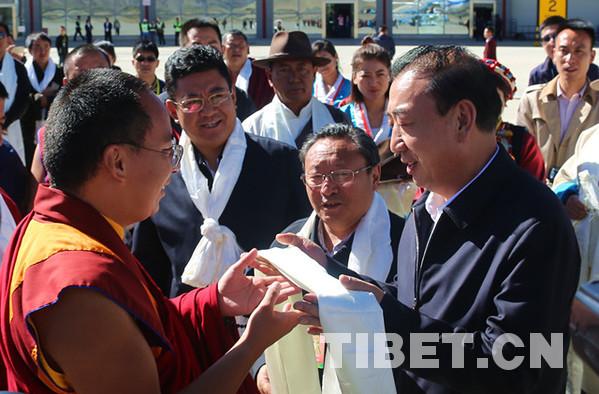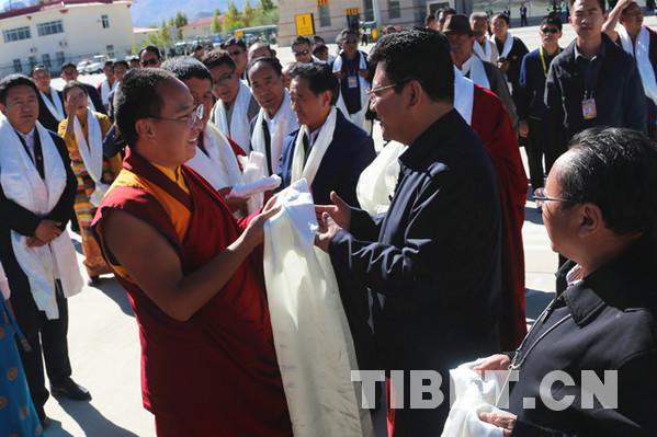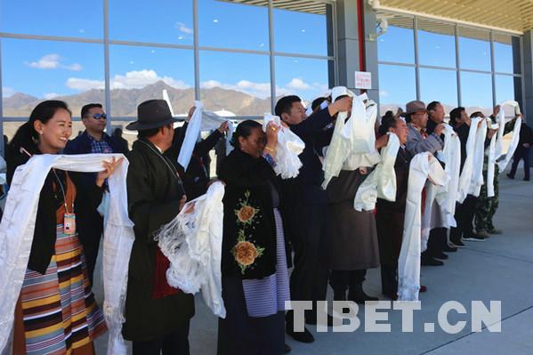 西藏自治區(qū)黨委常委、統(tǒng)戰(zhàn)部部長旦科,西藏自治區(qū)政府黨組副書記格桑次仁,西藏自治區(qū)政府副主席、日喀則市委書記張延清等領(lǐng)導(dǎo)前往機場送行。攝影:王淑。