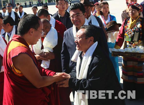 十一世班禪向相關(guān)工作人員表達謝意。攝影:王淑。