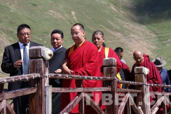 在觀看玉樹市全景的同時(shí),班禪不斷地與玉樹當(dāng)?shù)馗刹總兘涣髡鸷笾亟ê陀駱浣?jīng)濟(jì)社會(huì)發(fā)展相關(guān)情況。班禪在觀景臺(tái)上踱步前行、邊聊邊思考,大家都為這位年輕宗教領(lǐng)袖胸懷天下黎民蒼生而欣慰。