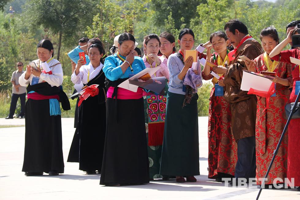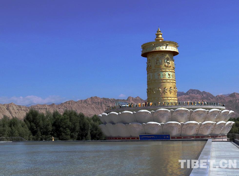 最后,班禪大師一行來到位于黃河岸邊的“中華福運(yùn)輪”,“中華福運(yùn)輪”轉(zhuǎn)經(jīng)輪主體高42米,于2012年獲頒吉尼斯世界紀(jì)錄?!爸腥A福運(yùn)輪”坐北向南,由黃河民俗博物館、倒影池、轉(zhuǎn)經(jīng)塔三部分組成。班禪大師一行,背對著翻騰著青色波濤的黃河坐下,面對著“中華福運(yùn)輪”,班禪帶領(lǐng)僧眾念誦祈愿經(jīng)文,祈禱世界和平、國泰民安、五谷豐登、眾生幸福。(中國西藏網(wǎng)文、圖/袁星宇)