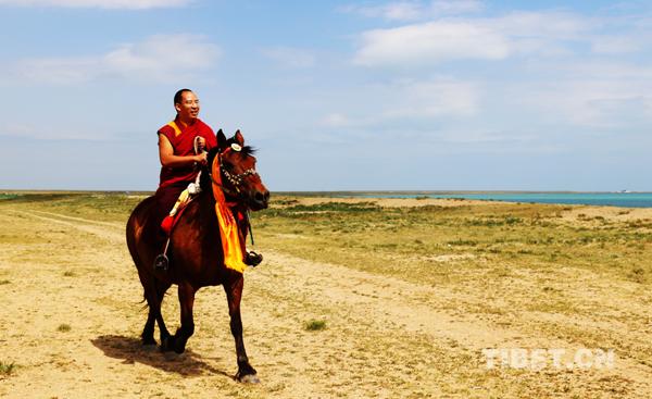 十一世班禪今年二十七歲,風(fēng)華正茂青春時。大部分時候人們看到他,都是在進(jìn)行莊嚴(yán)肅穆的法事、會議、拜見、會見等活動,大家看到的是大師的文質(zhì)彬彬、溫文爾雅。大師的談吐也展示出廣博深邃的知識和高雅的修養(yǎng)。但是今天他策馬奔馳、衣袂飄飄地出現(xiàn)在青海湖邊的景象,讓大家又似曾相識。對了,十世班禪也是愛馬如癡,曾經(jīng)在藏區(qū)考察調(diào)研時,經(jīng)常騎馬馳騁,也曾飼養(yǎng)過很多名馬。