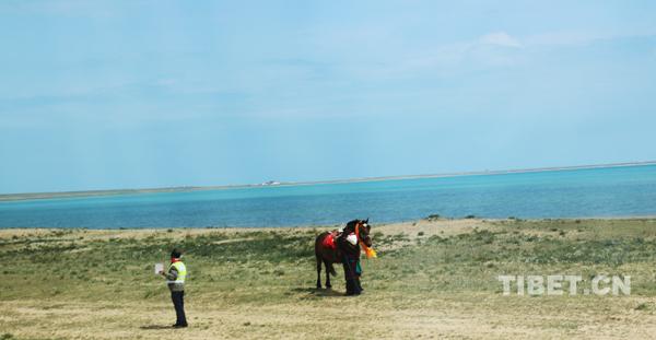 海西州蒙古族、藏族信眾在茶卡鹽湖旁恭候十一世班禪到來。