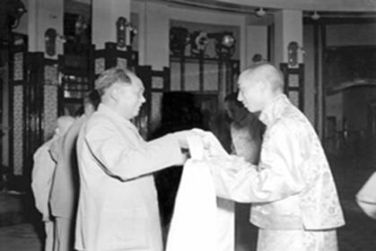 1949年10月1日,中華人民共和國成立,十世班禪大師當(dāng)天致電毛澤東主席和朱德總司令,熱情頌揚(yáng)中華人民共和國成立,稱“人民之康樂可期,國家之復(fù)興有望”,并希望西藏也能早日獲得解放。