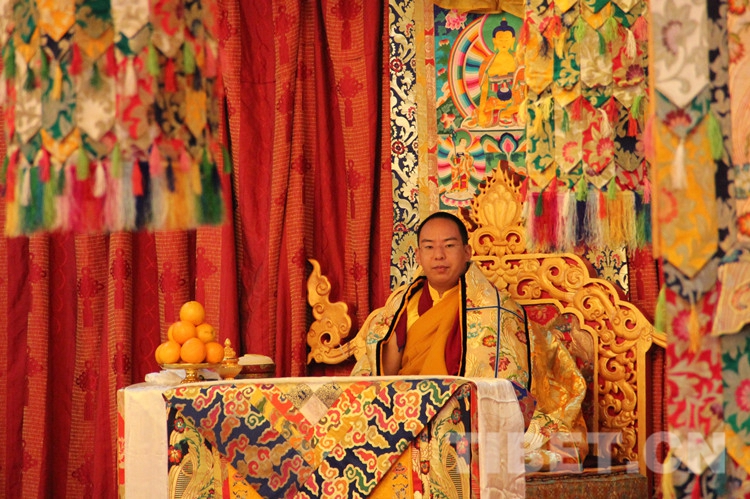 圖為十一世班禪端坐法座,領(lǐng)誦經(jīng)文。攝影:李元梅