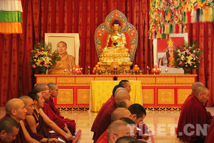 法會禮請全國政協(xié)常委、中國佛教協(xié)會副會長班禪額爾德尼o確吉杰布拈香主法,中國藏語系高級佛學院領(lǐng)導、經(jīng)師、學員及宗教界教職員工約130人參加法會。