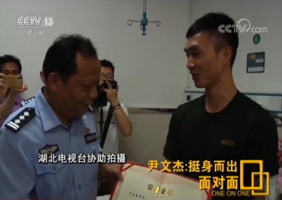 事件發(fā)生后,黃石市委宣傳部、市文明辦授予尹文杰“黃石青年五四獎(jiǎng)?wù)隆薄ⅰ包S石楷?!钡葮s譽(yù)稱號(hào)。而通過媒體的傳播,尹文杰這位90后退伍軍人獲得了越來(lái)越多人的關(guān)注。對(duì)此,尹文杰說(shuō):我不是英雄。