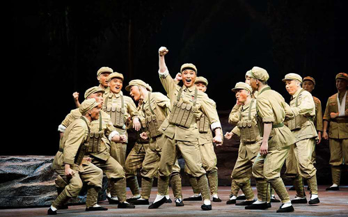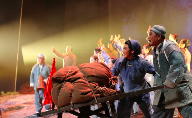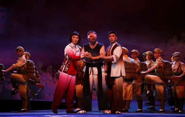 徐州歌舞劇院帶來(lái)的音樂(lè)劇《淮海兒女》以淮海戰(zhàn)役期間劉大爺全家參加支前工作為主線,采用音、舞、詩(shī)、畫(huà)的獨(dú)特表現(xiàn)形式,呈現(xiàn)淮海戰(zhàn)役中人民群眾送子參軍、支援前方、流血犧牲、迎得曙光的壯舉,反映了百萬(wàn)淮海兒女為淮海戰(zhàn)役的勝利、為解放全中國(guó)所做出的犧牲和努力。