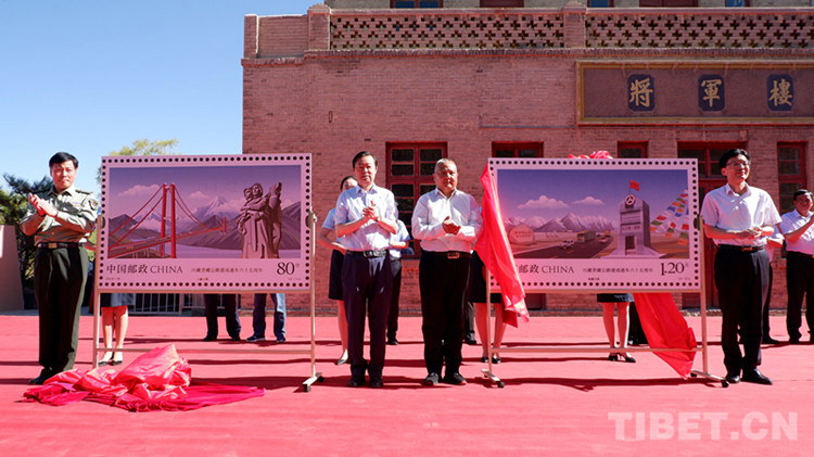 圖為《川藏青藏公路建成通車六十五周年》紀(jì)念郵票揭牌 圖片由主辦方提供