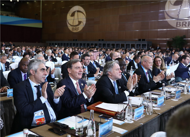 2019年4月26日,第二屆“一帶一路”國際合作高峰論壇開幕式在北京國家會議中心舉行。這是出席高峰論壇的代表在開幕式上。新華社記者 鞠鵬 攝