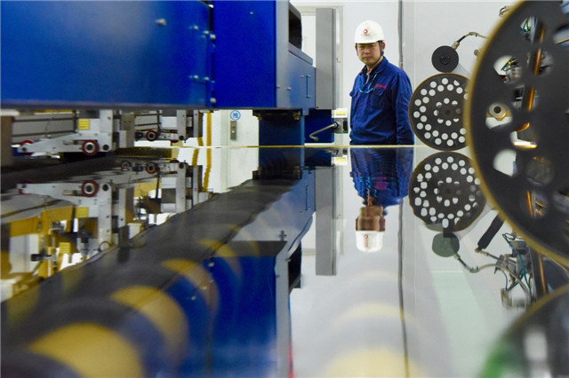 2019年1月9日,在中建材蚌埠玻璃工業(yè)設計研究院的生產(chǎn)車間內(nèi),工作人員在巡檢超薄玻璃生產(chǎn)線。新華社記者 湯陽 攝