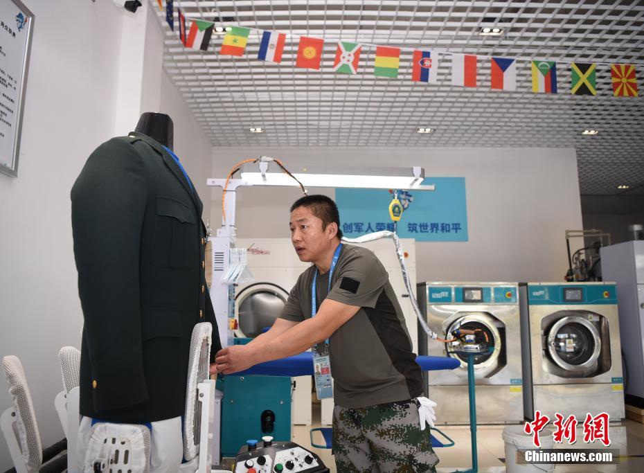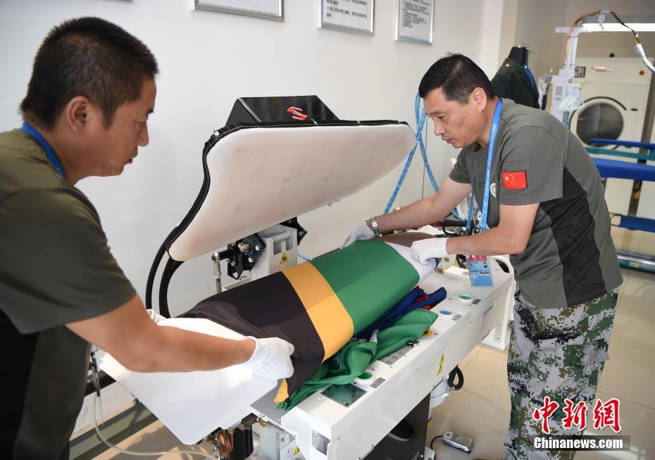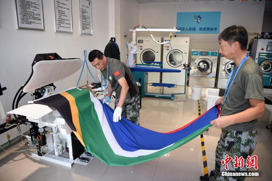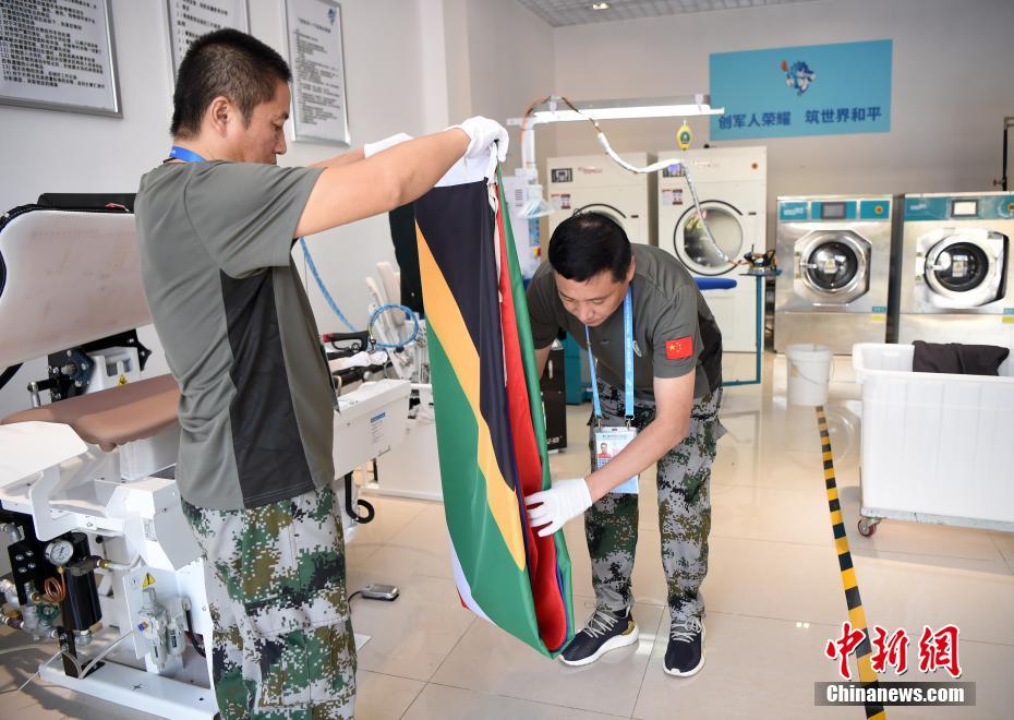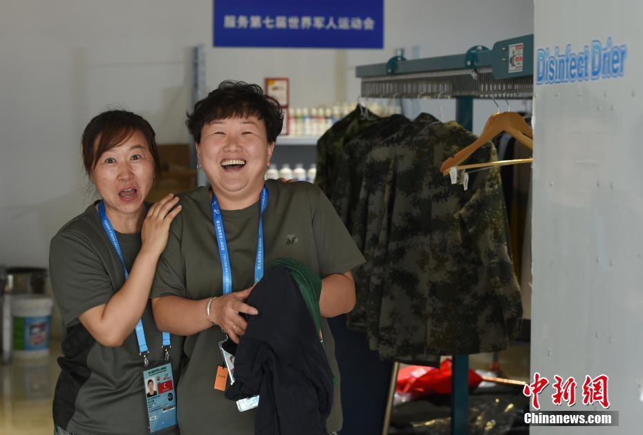 位于湖北省武漢市的第七屆世界軍人運(yùn)動(dòng)會(huì)運(yùn)動(dòng)員村(軍運(yùn)村)里,有一群提供洗滌熨燙服務(wù)的軍哥軍嫂:他們都是退伍軍人或軍屬。洗滌服務(wù)保障組副組長(zhǎng)王繼東介紹,保障組由25人組成,每個(gè)班次有9人,每天8點(diǎn)半至22點(diǎn)半,為入住軍運(yùn)村的運(yùn)動(dòng)員、代表團(tuán)官員提供衣物清潔、修補(bǔ)等保障工作。除此之外,他們還負(fù)責(zé)熨燙軍運(yùn)會(huì)會(huì)旗、國(guó)際軍事體育理事會(huì)會(huì)旗、各成員國(guó)國(guó)旗等300余面旗幟。由他們親手熨燙好的旗幟會(huì)被送至軍運(yùn)會(huì)禮賓部,供各項(xiàng)目比賽結(jié)束后的頒獎(jiǎng)及升旗儀式等使用。圖為參加武漢軍運(yùn)會(huì)的巴西代表團(tuán)官員來到洗滌服務(wù)保障組送洗衣物,接待他們的軍嫂熱情認(rèn)真地提供服務(wù)。中新社記者 侯宇 攝