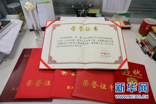 圖為葉金所獲榮譽(yù)證書。 新華網(wǎng) 汪亞/攝