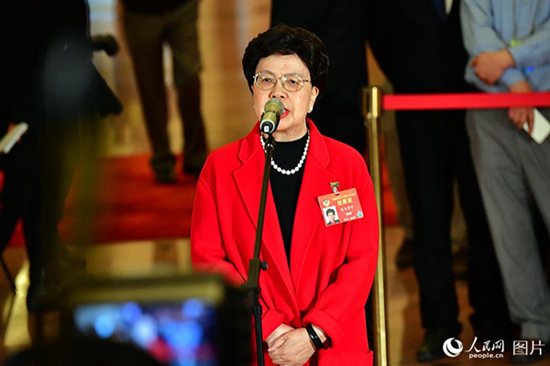 全國(guó)政協(xié)委員、博鰲論壇咨委與全球健康大會(huì)主席陳馮富珍接受記者采訪。人民網(wǎng)記者 于凱 攝