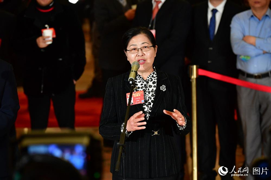 全國政協(xié)委員、故宮文物醫(yī)院院長宋紀(jì)蓉接受記者采訪。人民網(wǎng)記者 于凱 攝