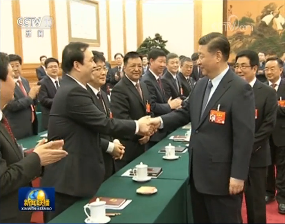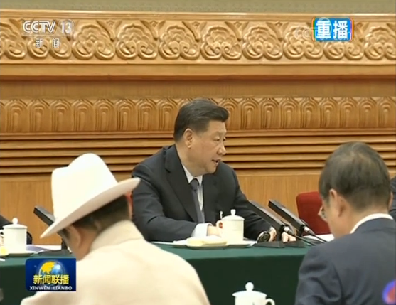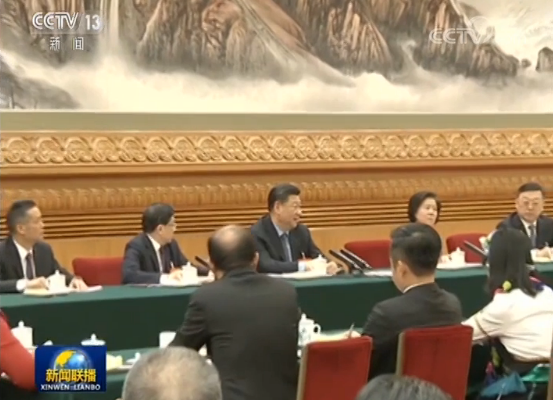 圖為3月7日,習(xí)近平參加甘肅代表團(tuán)審議。圖片來源:新聞聯(lián)播截圖