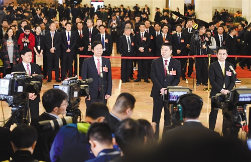 3月15日,十三屆全國人大二次會議第三場“代表通道”集體采訪活動舉行。