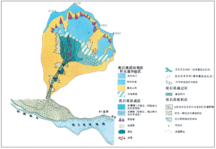 卡貢弄巴(古鄉(xiāng))冰川泥石流(1:110000)杜榕桓繪制并文,引自《青藏高原地圖集》,1990