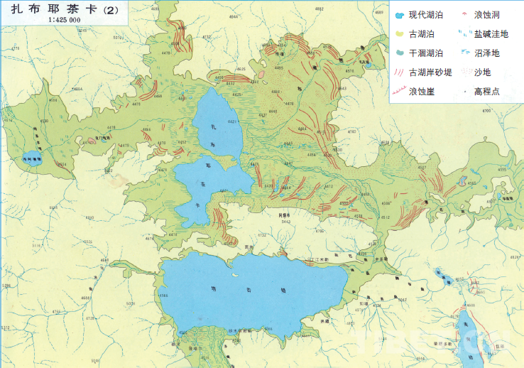 古湖泊退縮圖——扎布耶茶卡 羅國(guó)祉繪制并文,引自《青藏高原地圖集》,1990